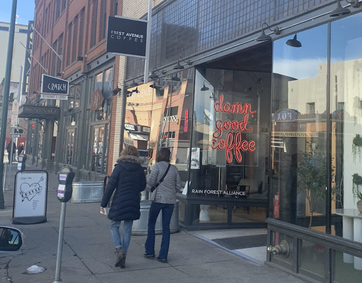 The neon sign facing the street proclaims, ‘damn good coffee’. I say, Damn Straight! But it’s more and better than just that. As the retail shop of sister company, Roast House Coffee , First Ave Coffee takes obvious pride in serving a unique, full throated, high quality coffee/consumer experience.