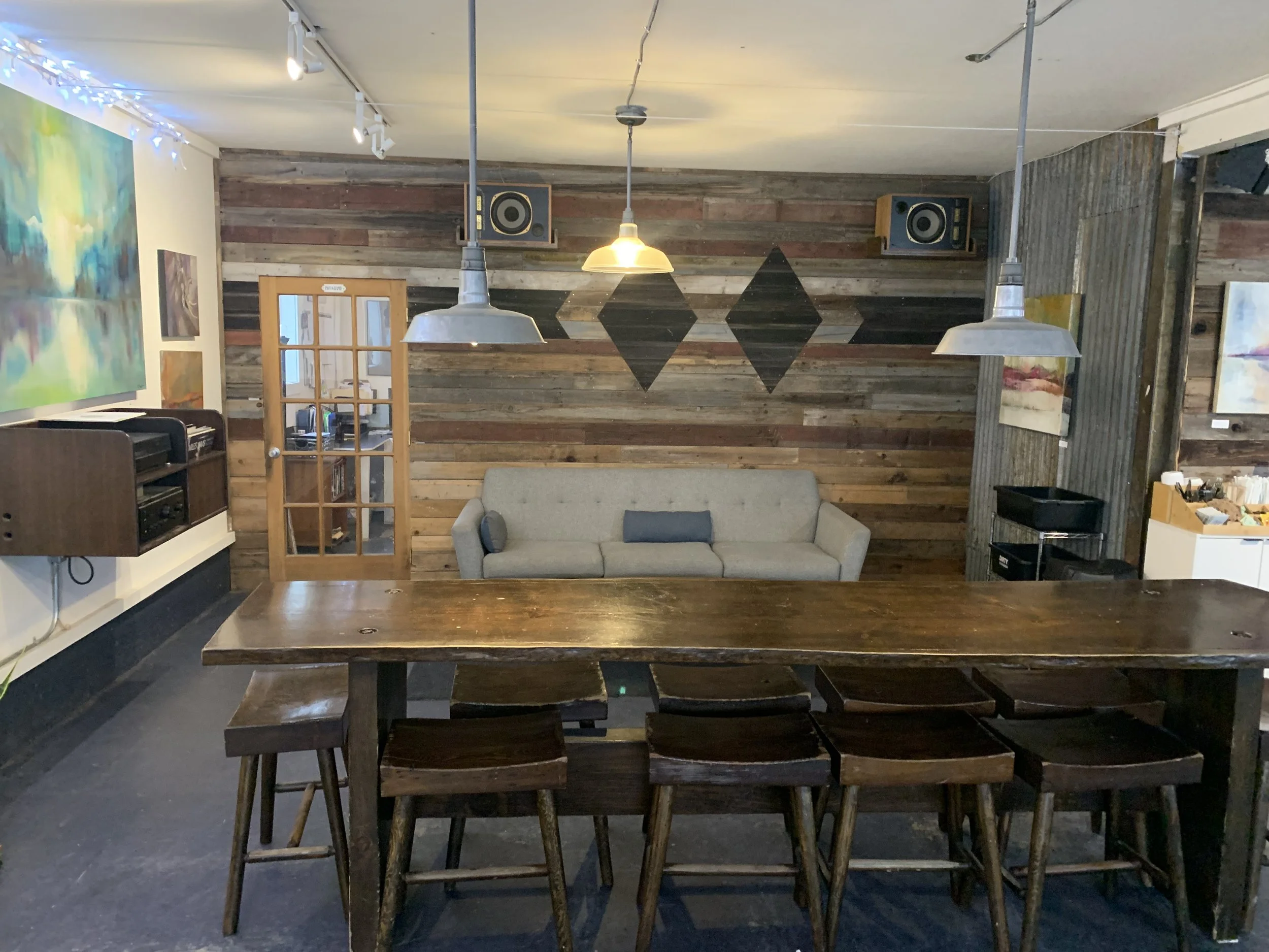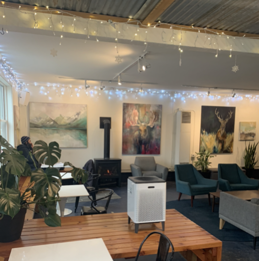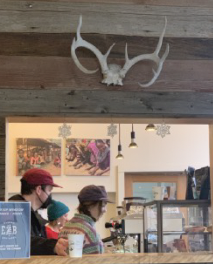 EB’s efforts to created a destination of connection, both for the Sandpoint community as well as to the growers and importers they support is front and center. This community oasis is clearly a local favorite with a flavorful dose of van dwellers, bike and ski enthusiasts (depending on the season), and long-time locals. Hanging out and visiting while enjoying your tasty brew seems nearly mandatory as this is a place that welcomes you, dogs included, and oozes with laid-back comfort. Community tables, sofas, and lounge chairs compliment a mix of tables for individual parties and two generous outdoor areas. Food options include a quality selection of bakery and some tasty breakfast burritos. Local, high quality art is featured on he walls with price points if you are so inclined. A turntable and selection of albums invites customers to spin the vinyl of their choice and a fireplace adds to a cozy mood in the winter. Garage doors open up in the summer to a large outdoor space between the shop and the old grain mill, the tallest structure in town. Merch is solid. The single bathroom is accessed by going outside and entering another doorway.