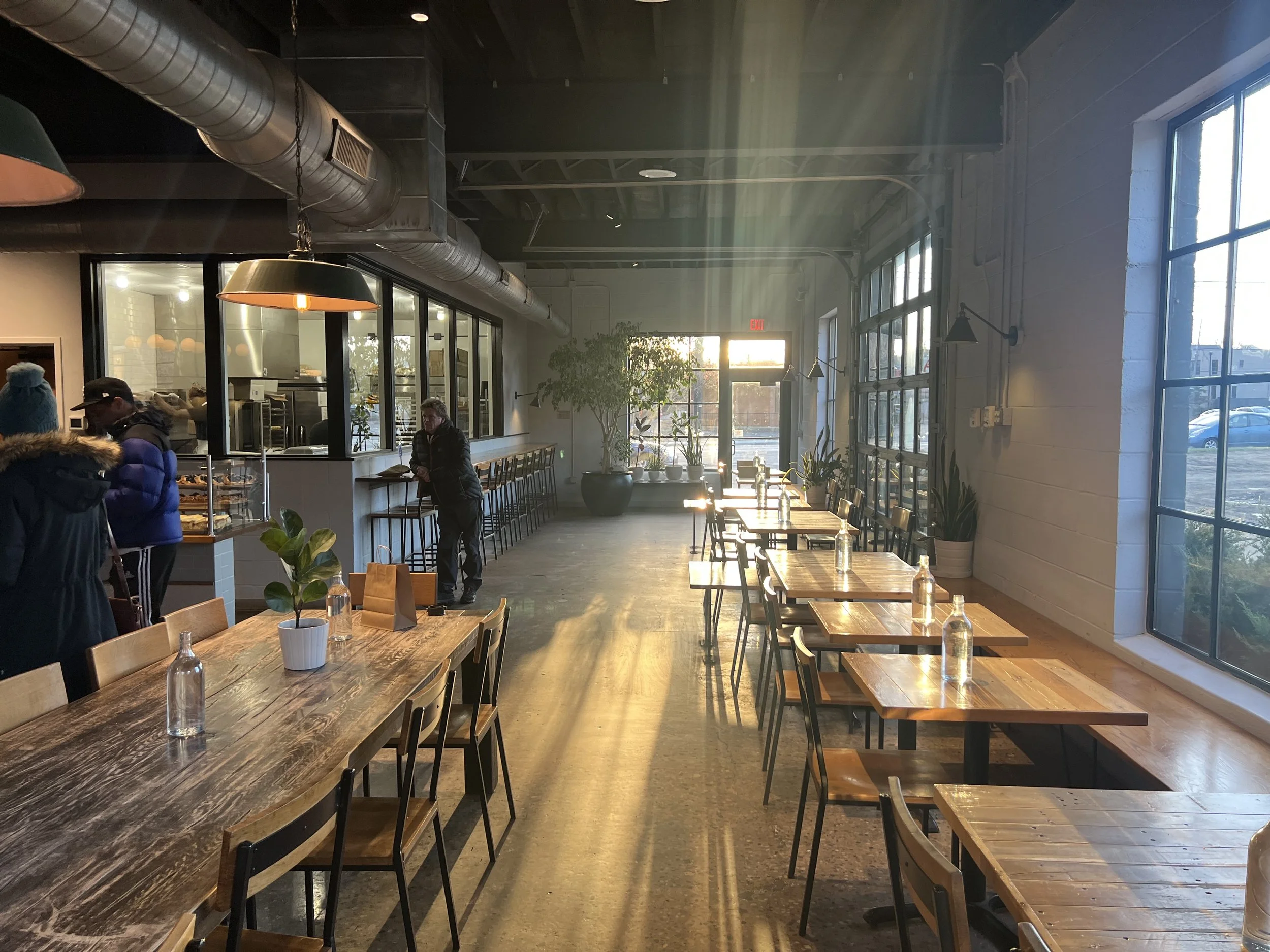 Concrete floors, great tables and open architecture with plenty of seats and natural light streaming in really makes you feel great as you walk in the door. That, and the olfactory ecstasy from the in house bakery leads you to the counter of baked goods and coffee bar. The bakery items are intentionally unmarked so as to spur conversation with the customers upon ordering. Great idea to get the conversation going.