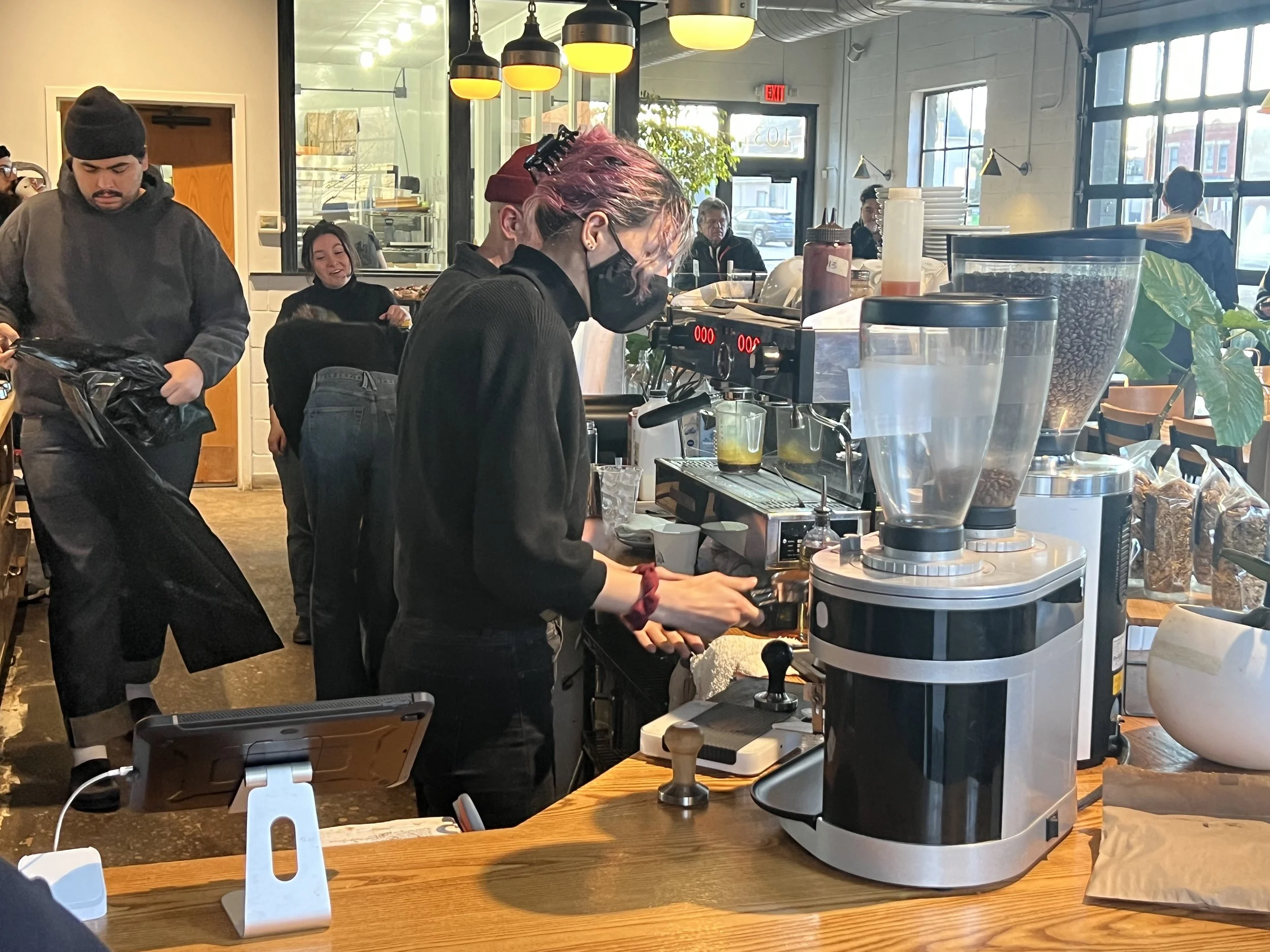 The first time Matt strolled into “Fox” he was wearing a Bowdoin sweatshirt. The manager immediately struck up a conversation surrounding Portland Maine and Tandem. He is super friendly and has a great line about Maine…”The Ireland of the United States”. Matt comes to Columbus 3-4 times a year and the manager always recognizes him and strikes up a conversation. He defines that lump of goodness. The baristas are serious about their craft and are careful purveyors. It gets pretty busy here post 8:30 on a weekend so they are grinding it out but still friendly.