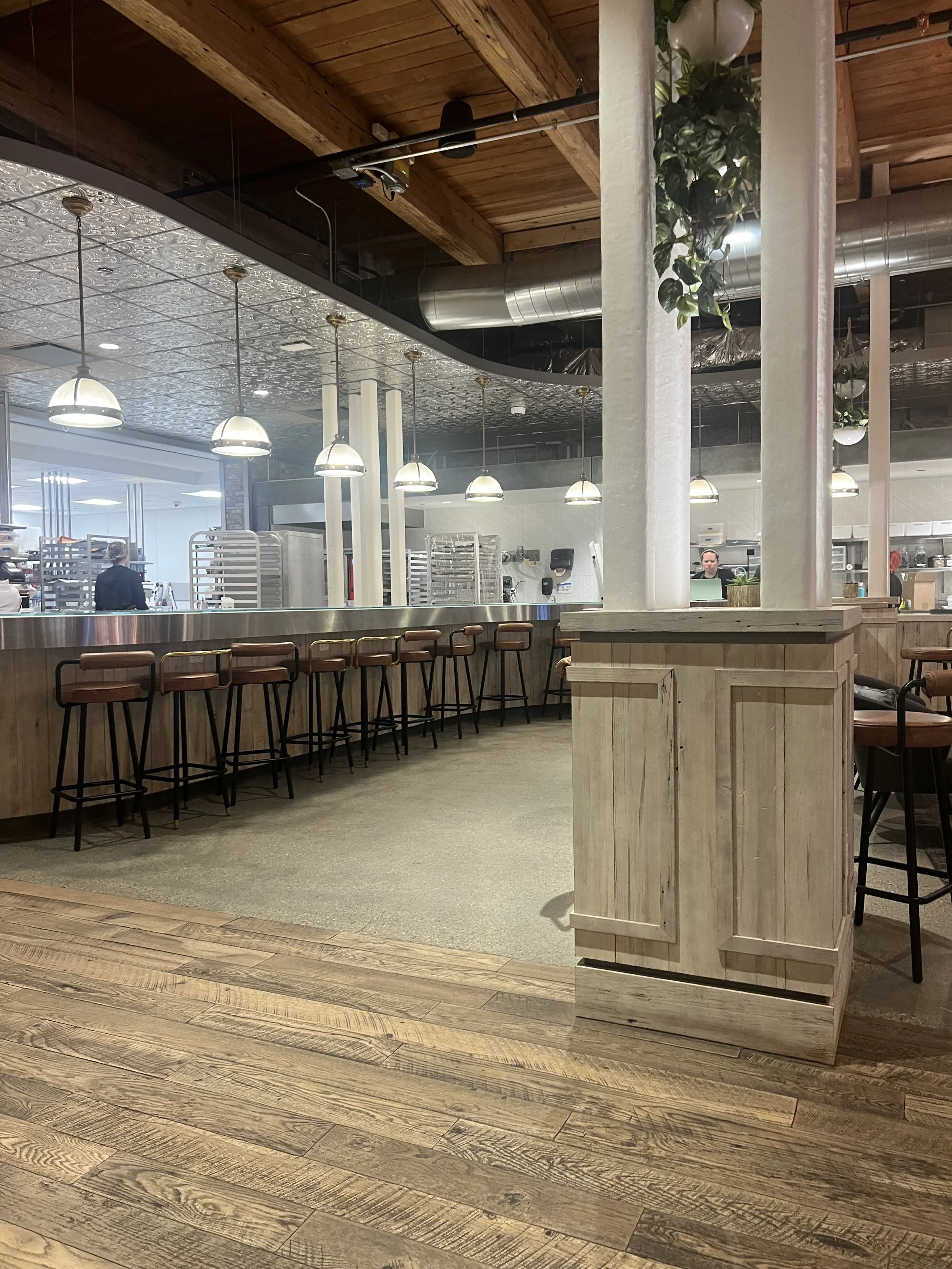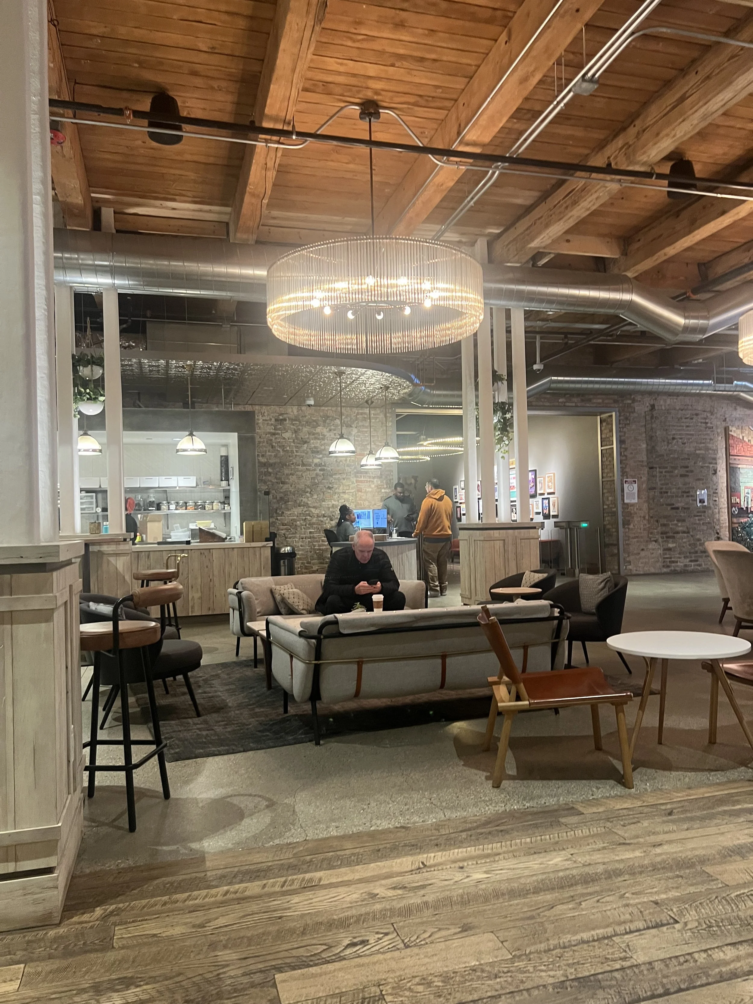 An extremely intentional seating array with a banquet, bar seating and lounge seating with an ample supply of each. The music is tastefully done as a non inhibiter to studying or conversation. It mixes well with the vibe. The noise could be a factor given the architectural loft feel, but I think it would only be distracting if the Ambler was full. Not tons of outlets but certainly enough to plop down and work for awhile. A word of caution that it is carryout only from 11:00-1:00 as I think this is due to Mondelez’ need for lunch or meeting space.