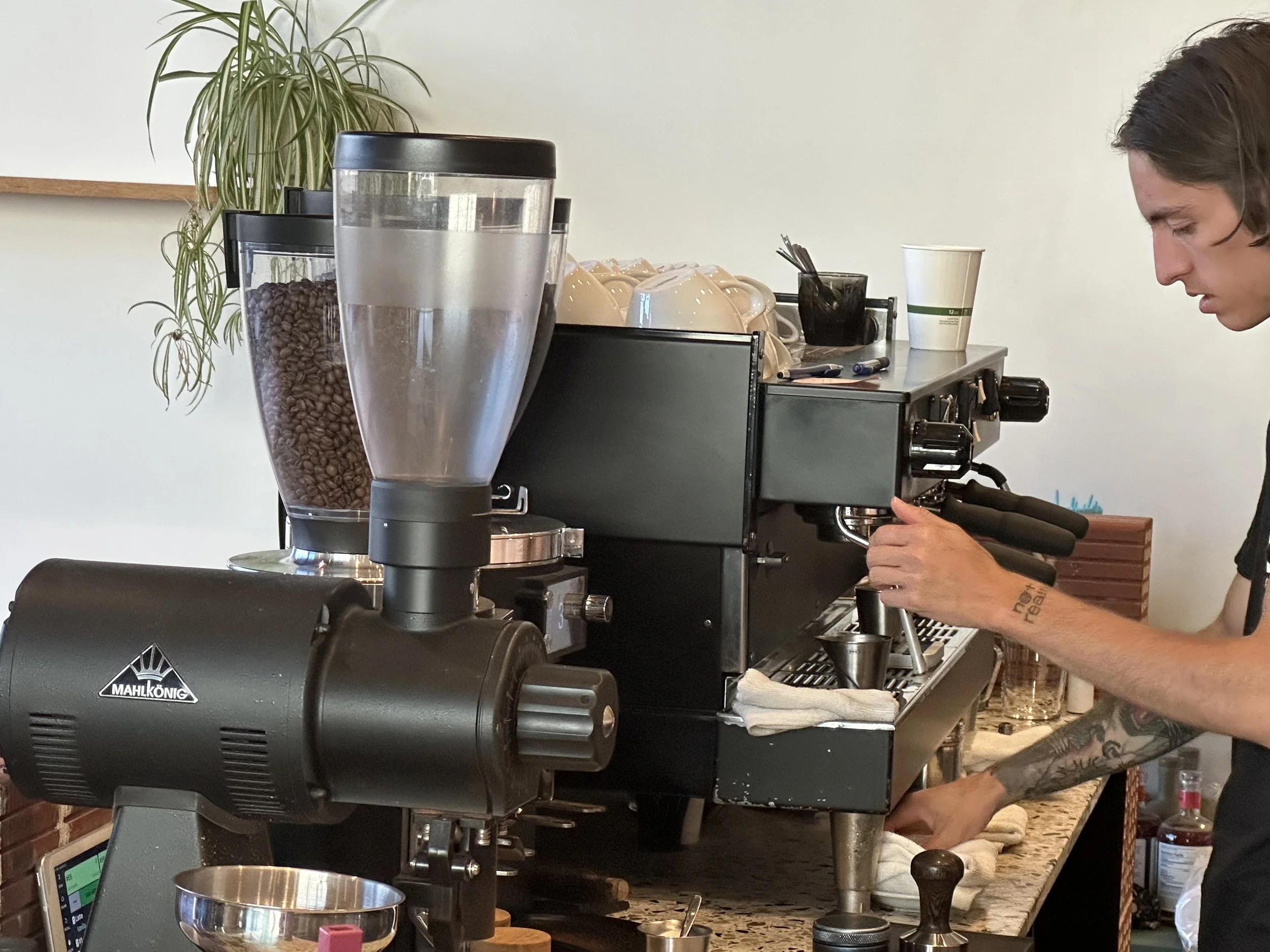 Their design aesthetic is compelling, both for their plant (it includes and on-site roastery) and their logo, but they are obviously still developing their merch. A bigger presence in this area would likely help them expand reach, even with locals. We chatted with several who did not know June existed . Shame! June was previously Epilogue Roasters, a wholesale roasting company.