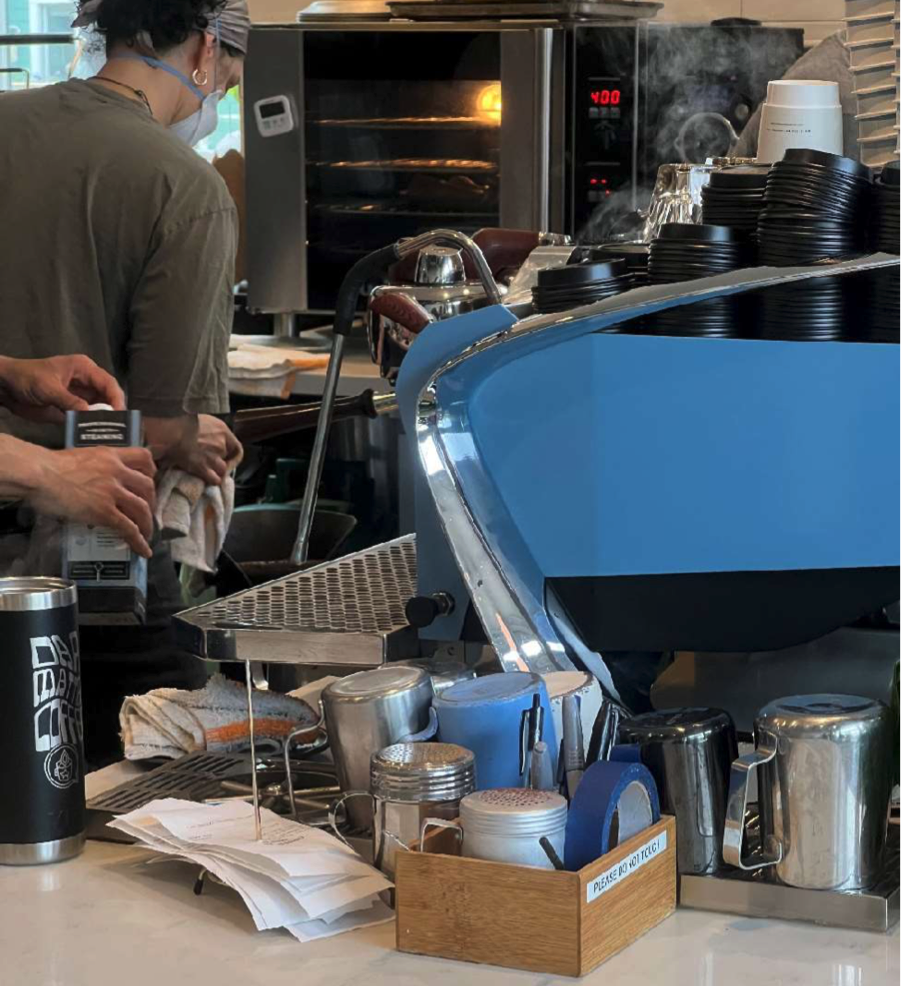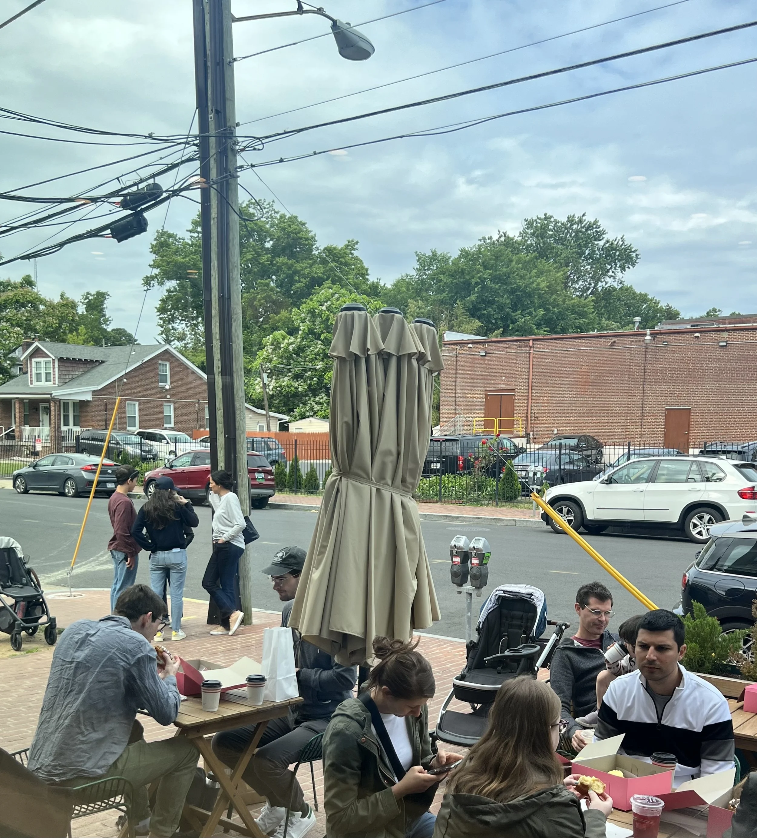 Real neighborhood feel at this shop and if I had to use one word…..friendly. The outdoor seating is not huge, but nicely done and seemed comfortable. The indoor has tables (not many) and a large coffee bar/food prep area. It was super busy with an eclectic crowd of young families (replete with strollers), hipsters as well as the self described “older folks”. The friendliness from greeter/order taker/owner??? was an immediate smile as he engaged with each person in line telling jokes to kids and showing interest in all that came through the door.