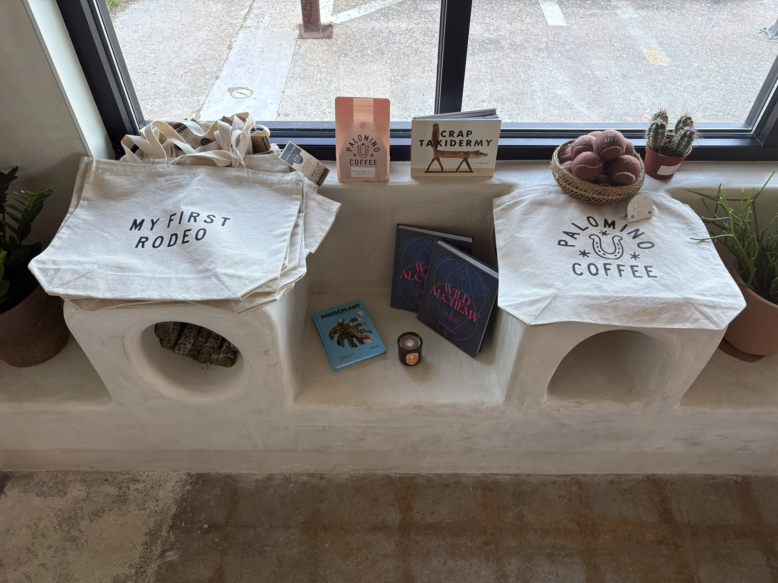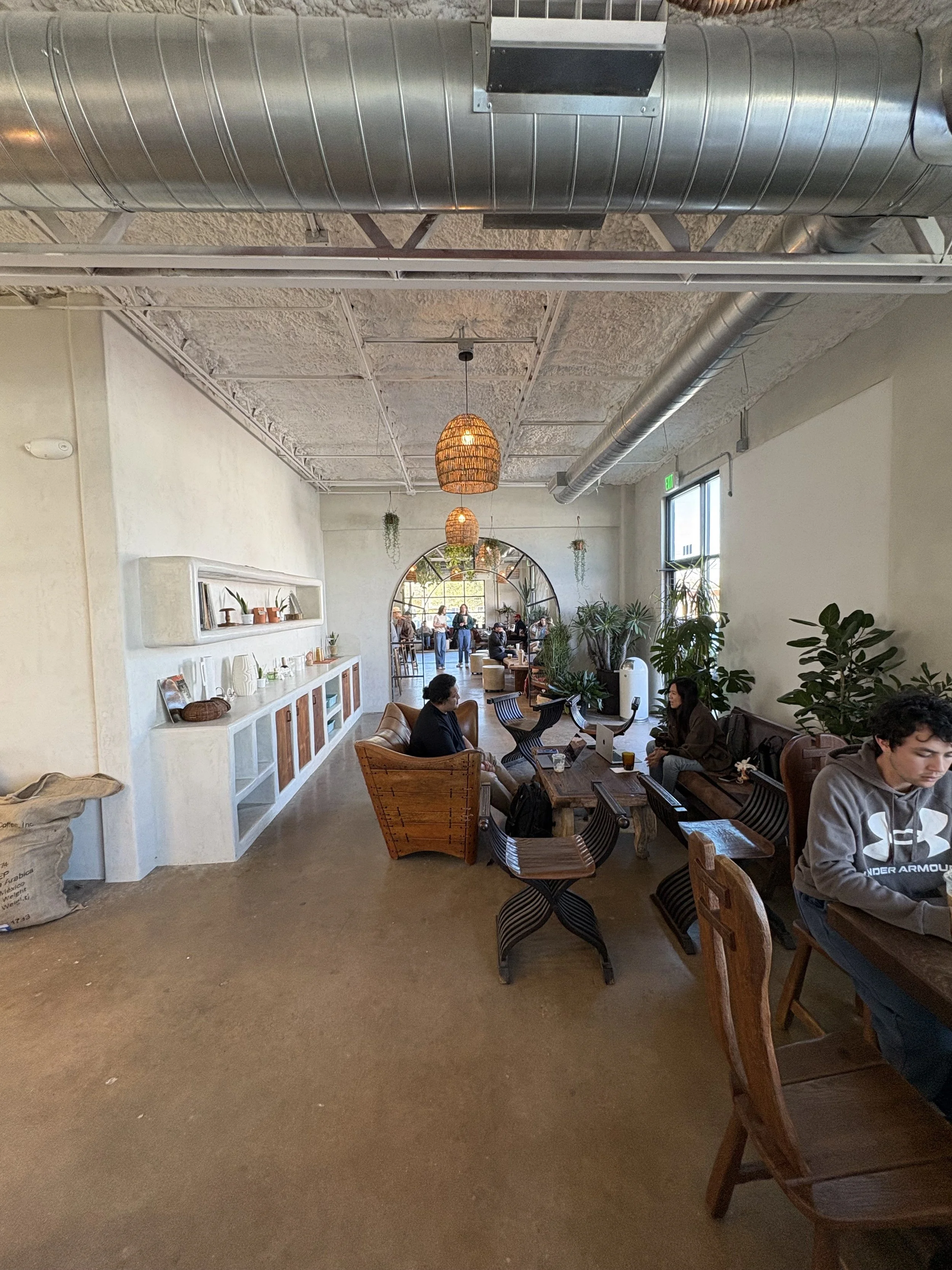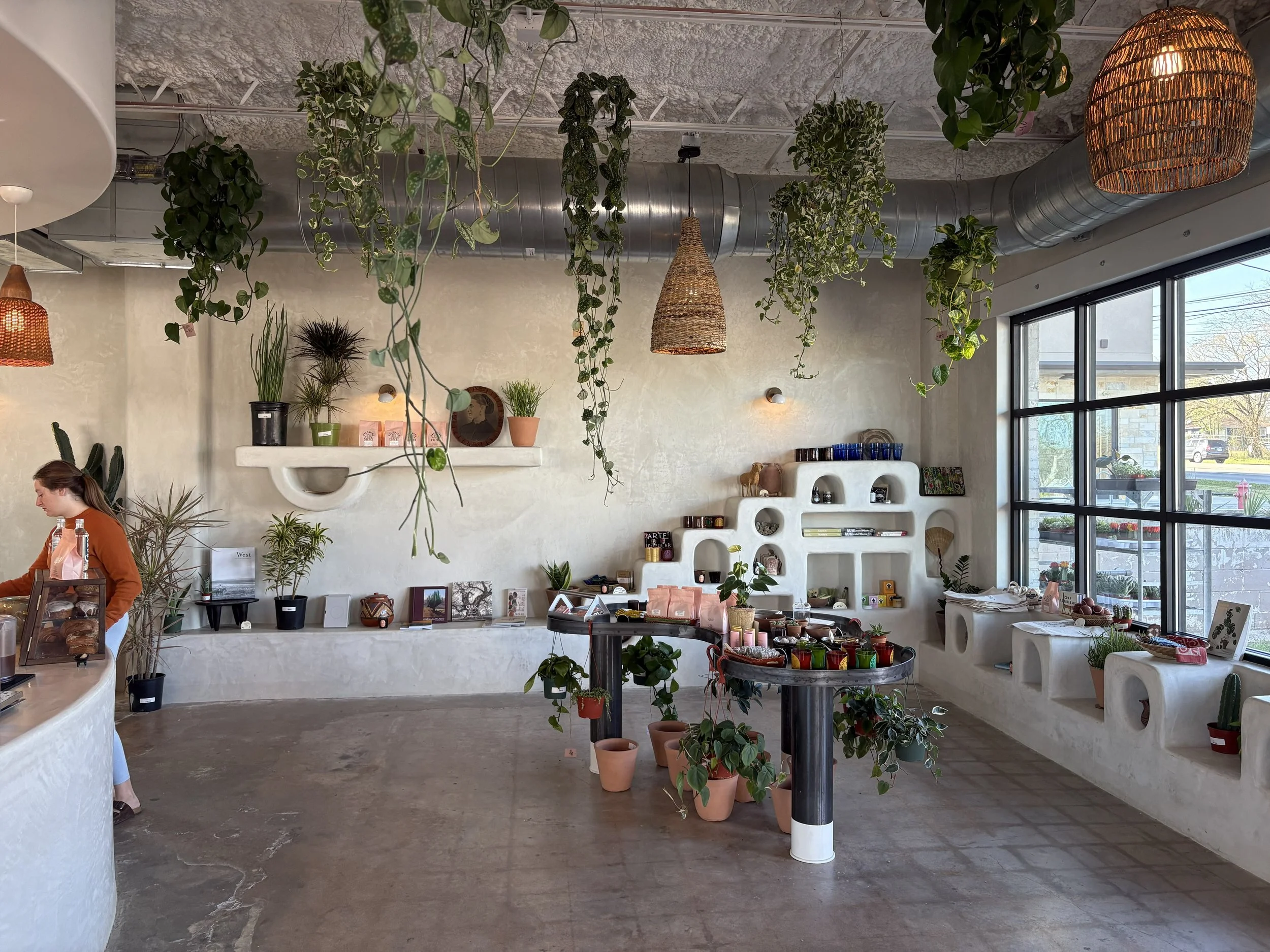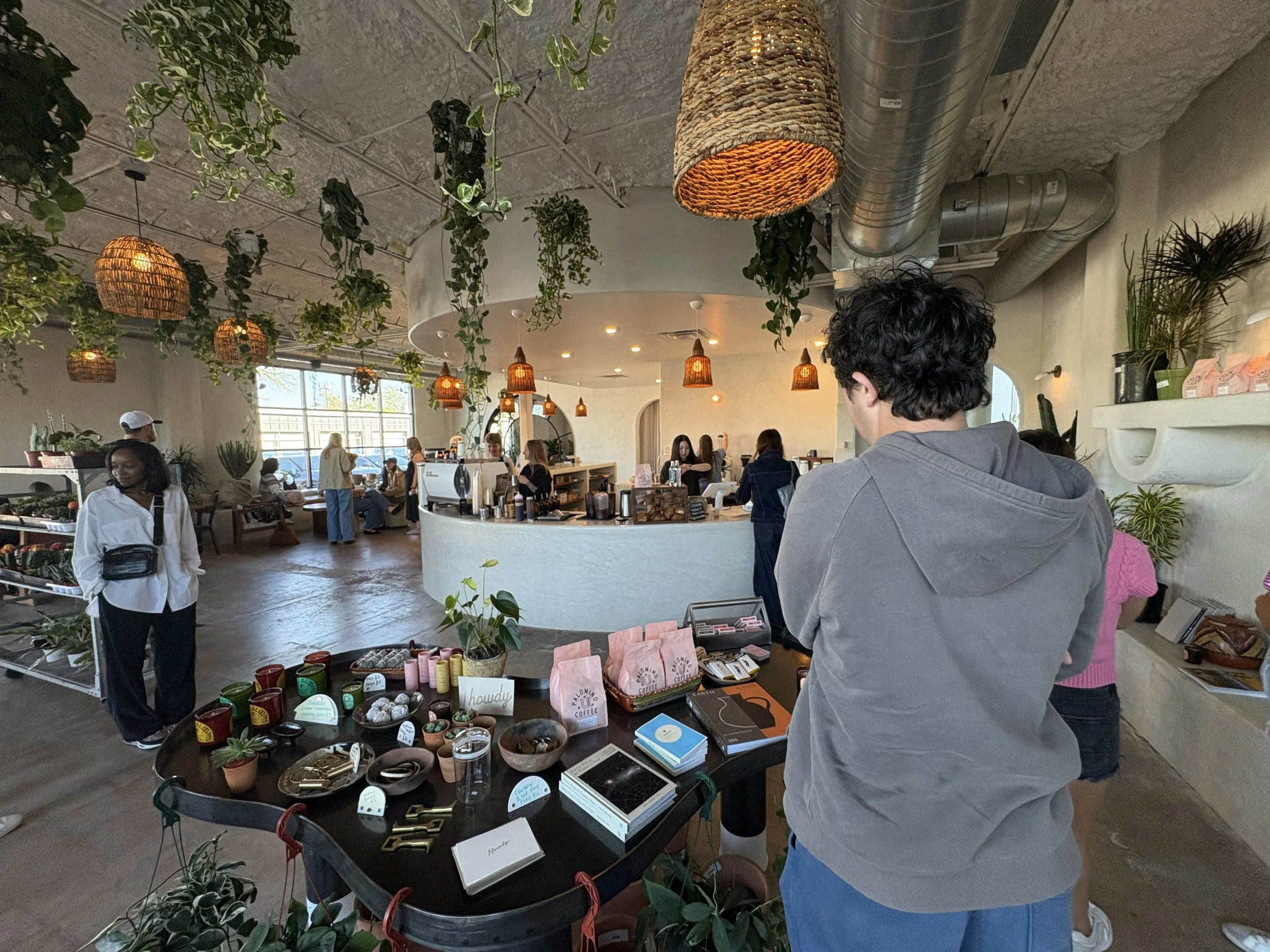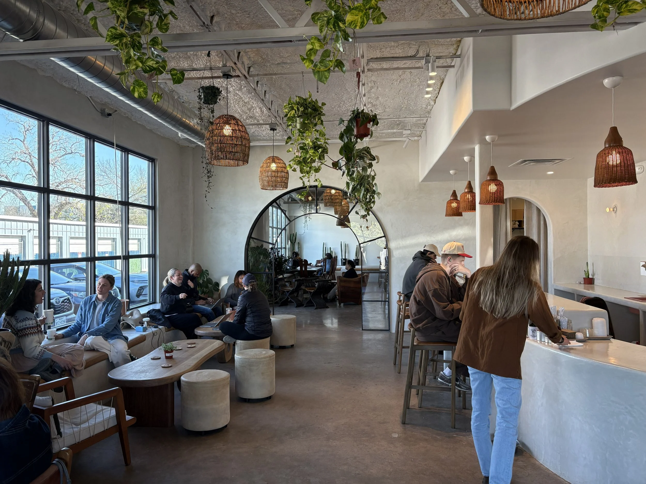 One of the best parts of this coffee lab is its atmosphere. It is not too crowded, which makes it feel calm and easy to enjoy. The space has a desert, earthy, and cowboy-inspired vibe that gives it a lot of character. It is the kind of place where people come to study, have conversations, or simply relax with a drink. The natural light is another standout feature, helping the space feel bright, warm, and welcoming. With a mix of cushioned wooden benches, chairs, and couches, there is a comfortable seating option for just about everyone. Really stands true to their Marfa vision. Very eclectic merch with great branding almost bringing an apothecary vibe.