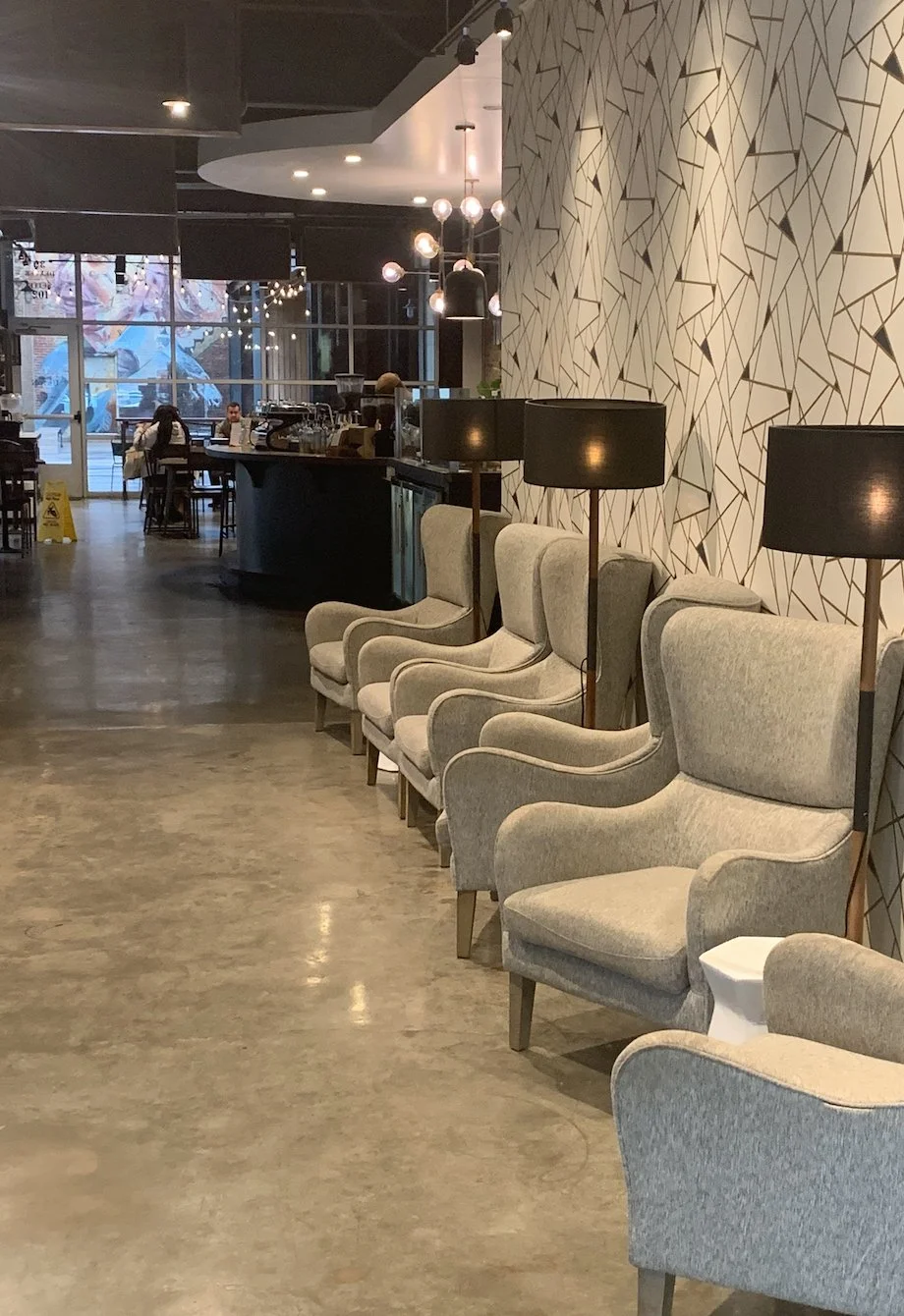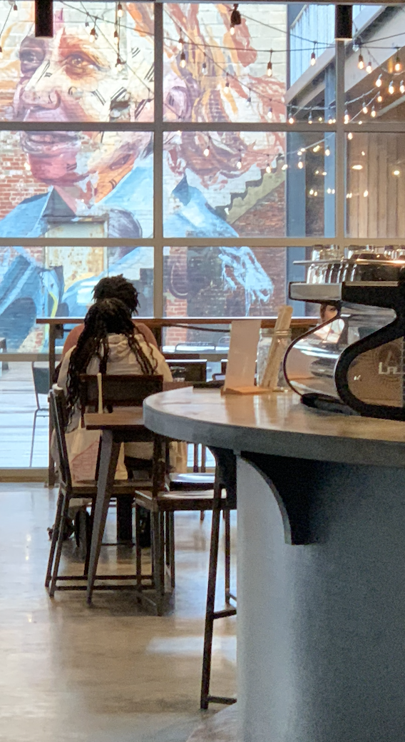 Between the Court Square Fountain, a nearby life-size statue of the small but mighty Rosa Parks and the state Capitol sits this beautiful coffee shop on Dexter Avenue. Prevail has a modern interior with local art, a number of choices for lounge or work seating, bare brick walls, concrete floors, and a series of glass garage doors that open to a large and inviting outdoor courtyard. A brick wall with a large mural faces the rear, glass wall of the shop and provides the sense that you are in a gallery worth exploring. Leather sofas, upholstered lounge chairs, and rich wooden tables complement the glass, brick, and concrete used throughout the interior to create a comfortable and welcoming interior. The variety of places that welcome you to sit down had me scanning back and forth, trying to choose between numerous distinct and appealing options. I noted that despite the shops many hard surfaces, the music being played was crisp and pleasant. Prevail’s design team had thoughtfully hung a series of sound absorbing panels from the ceiling to soften the acoustic experience and the result was noticeably pleasant. I commented to the barista on this unusual level of detail for a coffee shop and was told that it really helps with their live music concert series featuring local artists on the first Saturday of each month. Nice. Their playlist was an Americana genre and I Shazamed a few tracks that caught my ear. They have high top bars and tables for work surfaces, plenty of outlets, and a broad bakery selection of both sweet and savory. Merch was solid. Their bathrooms are down a stairwell, which was a bit bothersome but the facilities were modern, clean, and spacious.