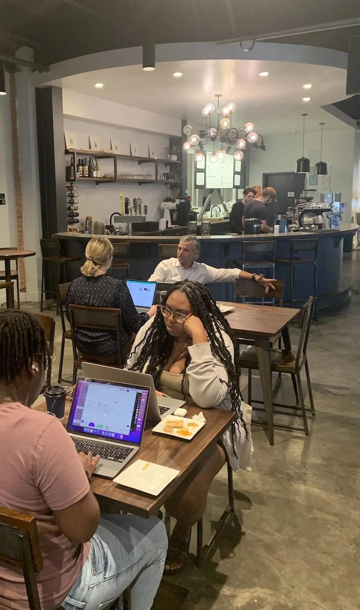 A very attentive barista served me and as I enjoyed my cortado at the bar, they thoroughly cleaned aIl surfaces within reach. I had an engaging conversation with my Barista who gave me a sense that a commitment to community and quality is in the DNA of this brand. We also chatted about their beans, a few unusual attentions to detail in their interior space (see vibe section), their lemonade, their live music events on the first Saturday of every month, and their other locations. I had the unmistakable sense that this level of engagement was part and parcel to their brand.