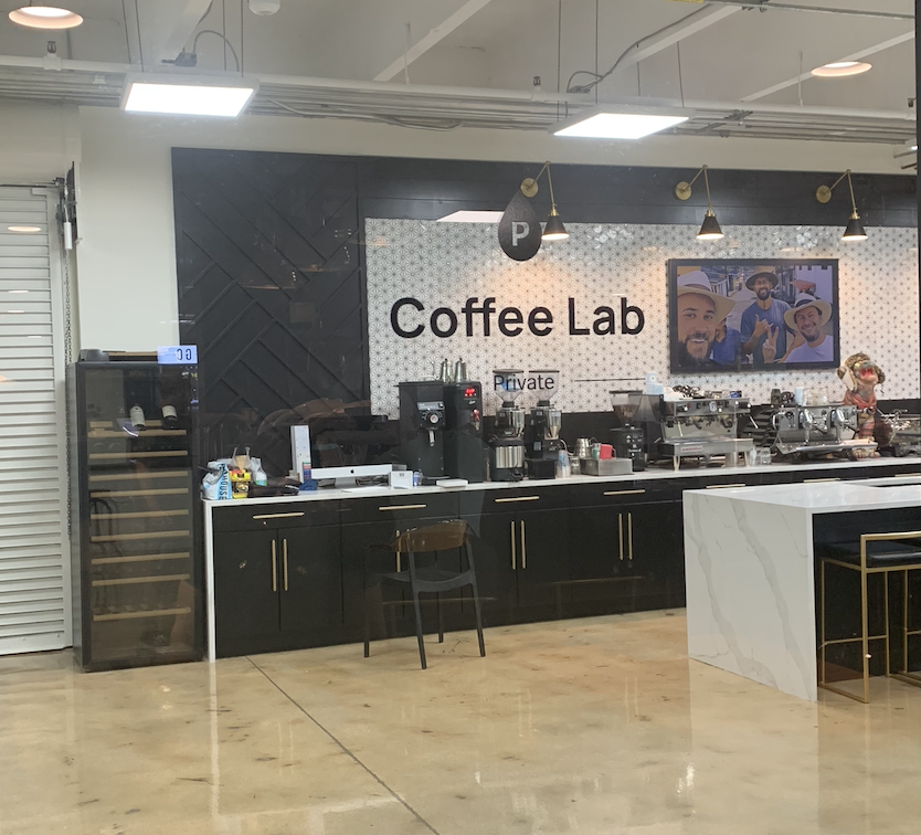 I didn’t plan on driving into West Palm Beach, but there was something about an exit sign reading, Okeechobee Blvd Downtown, that compelled me to use my right turn blinker. I know that’s a lame justification, but I am a wompler, and sometimes you have to trust your gut. It turned out to be the right call. Just past the lake that earned the name Okeechobee (big water), about half-way between the expressway and downtown and next to the railroad tracks, a VFW, and a warehouse gym, sits The Pumphouse Poruatorium. Its curb presence prickled me with anticipation. Upon entering, you walk down a hallway with windows to your left that display a large roaster and cafe ahead that looks down upon the operations. Neat. When you walk through the next door, the experience shifts from manufacturing plant to an elegant consumer experience. Persian rugs, leather sofas, cushy bar stools, and hardwood dining booths, welcome you to enjoy a diverse menu along with craft coffees. Frank Lloyd Wright was all about bringing the outdoors, indoors and whoever designed this establishment achieved the same effect by melding both a roastery, a coffeehouse, and a coffee lab into a single experience that is all at once, invitingly industrial and unpretentiously opulent. Merch is solid, lighting fixtures are interesting, and bathrooms are modern, spacious and clean. Menu varies from breakfast fare to a full blown lunch offerings. Acoustics were pleasant and the entire operation, roastery and all are clean, orderly, and in top notch condition.