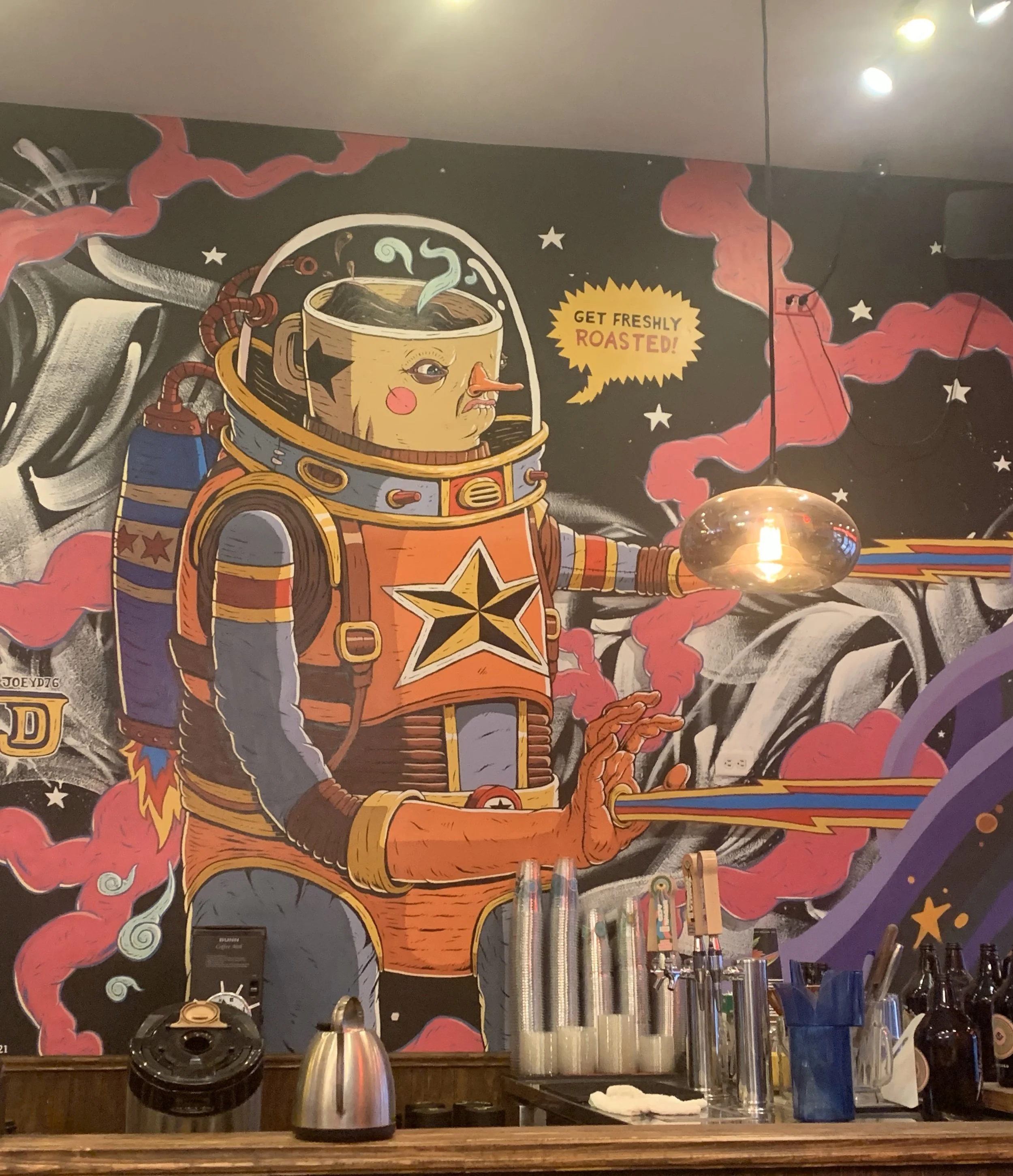 In a word, friendly. Upon entering the store one is greeted with a heartfelt and welcoming hello. The clientele also embodies this community feel and there just seems to be a genuine effort to calling this place home. Star Lounge was rehabbed a couple years ago and they utilized a ton of local artists to do the murals and put in a new bar with a HUMBOLDT logo paying homage to the neighborhood. There is a level of funkiness and whimsy that goes along with their manifesto of “being an innovative culinary family fueled by community and passion to deliver the most intellectually honest coffee you will experience.” It is not uncommon to see one of the owners popping in and grabbing a cortado prior to walking to the Mothership (right around the corner). His engagement to the mission/manifesto oozes out with his passion for the product, service and ideals of the coffee shop. The music is varied and fits with the shop; one of the baristas only plays albums which I love as he wakes this lost art of the album construct. The hours of operation are also an example for other coffee shops - like the fact that they start the day at 6:00AM and stay open to 9:00PM. The décor is multi layered with a traditional coffee shop downstairs with plenty of seating, outlets, wifi for those wanting to put in some work time. There is an outside back area with bench seating that has a good feel on a nice Chicago day. Finally, there is an upstairs that is decorated in more couch/comfortable chair arrangements with a pool table. I’m realizing the length of this review, but must point out the intentionality to the brand (cups have great design; great merch that highlights the name and brand).