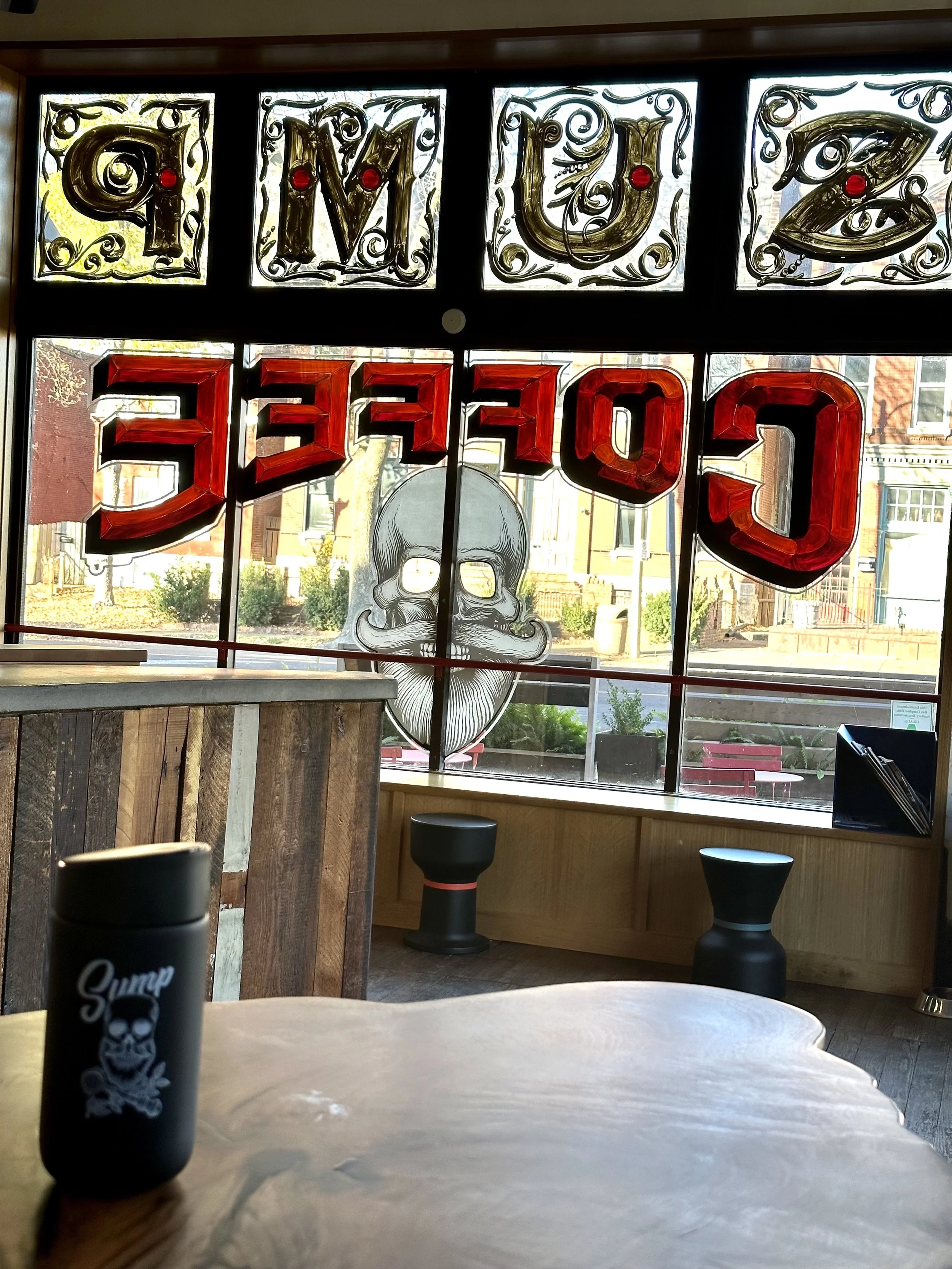 On the bluffs of the Mississippi, just south of the Anheuser-Bush Brewery, sits a compelling specialty coffeehouse that is sure to delight. Sump resides in a charming, two story, brick building in the historical, commercial district of Marine Villa. Large, store front windows double as a canvas for a highly stylized font and logo and, reminiscent of a circus billboard, beckon you step inside with hopes of finding something beautiful, amazing, wonderful, extraordinary, beautiful (lyric from, Circus of Heaven, by Yes - which this shop brought mind and is worth a listen). Any such hopes will not be disappointed.
